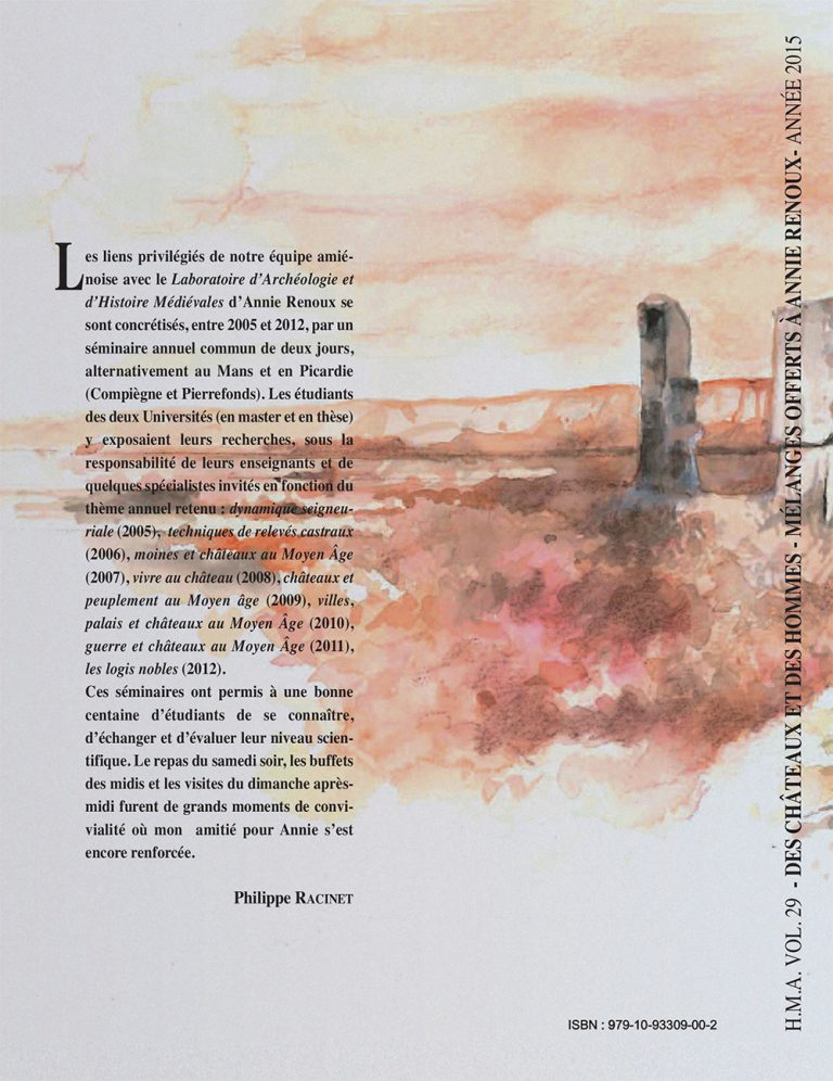 de Reims où jusqu’en 1988 elle a été successivement assistante, maître-assistante puis maître de conférences. En 1988-1989, elle est élue professeur d’histoire et d’archéologie médiévales à l’université du Mans où elle termine sa carrière en 2013. Ses doctorants actuels comme passés et ses collègues engagés comme elle dans la recherche sur l’habitat noble rassemblent ici, pour lui rendre hommage, des contributions qui reflètent les orientations de sa carrière scientifique […].